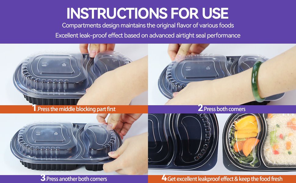 3. Disse beholderne er BPA-frie, temperaturbestandige og kan brukes i mikrobølgeovn. Produsert via sprøytestøping, har produktene våre lufttette lokk for å forsegle og trygt lagre mat. Holdbarhet og fleksibilitet, minimerer sprekker og forhindrer skader som er vanlig blant konkurrerende produkter. Plastbeholdere med lokk er enkle å rengjøre. Miljøvennlig og 100 prosent resirkulerbar.